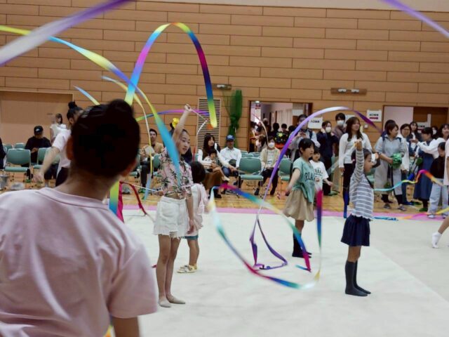 リボンが床に付かないよう振り回したり、きれいな波を描いたり基本的な