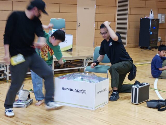 ベイブレード同士のぶつかり合い、スピード感と衝撃音の白熱したバトルが繰り広げられました!